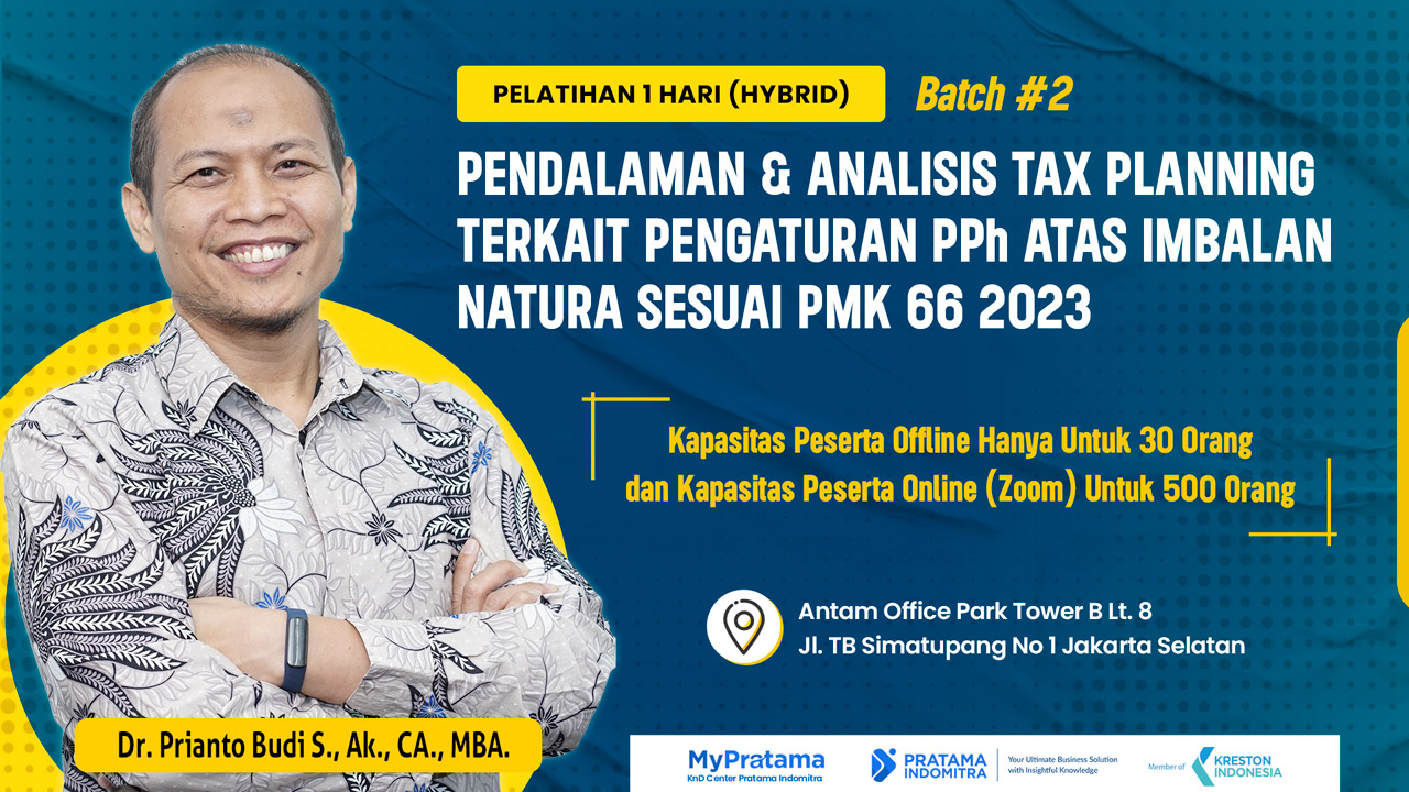 Training Pendalaman dan Analisis Tax Planning Terkait Pengaturan PPh Atas Imbalan Natura/Kenikmatan Sesuai PMK 66/2023 bersama Dr. Prianto Budi S., Ak., CA., MBA