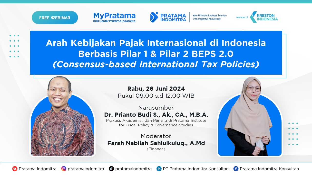 Undang rekan Anda untuk mengikuti Free Webinar "Arah Kebijakan Pajak Internasional di Indonesia Berbasis Pilar 1 & Pilar 2 BEPS 2.0 (Consensus-based International Tax Policies)" untuk belajar bersama-sama. Silahkan bagikan sekarang.